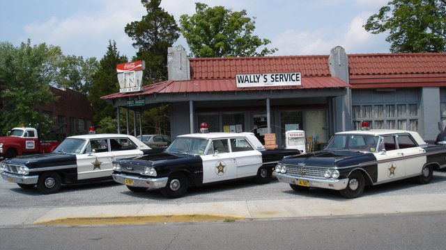 Today’s visit to “Mayberry” begins with a Squad Car. Where else can you ride in Barney’s car except Mayberry? Cruise on over to Andy’s Homeplace then ride in Mayberry style down Main Street past Floyd’s Barber Shop and Snappy Lunch. You’ll cruise by other Mayberry attractions like The Andy Griffith Playhouse, The Old Jail and the Visitors Center – Home of the Andy Griffith Museum. While at Wally’s don’t miss the best photo opportunity of the day – your photo in front of the Squad Car, a photo that says Mayberry like nowhere else. There are six squad cars that carry 4 passengers each on a 30 minute tour. Large groups will rotate between the gift shop and tour.